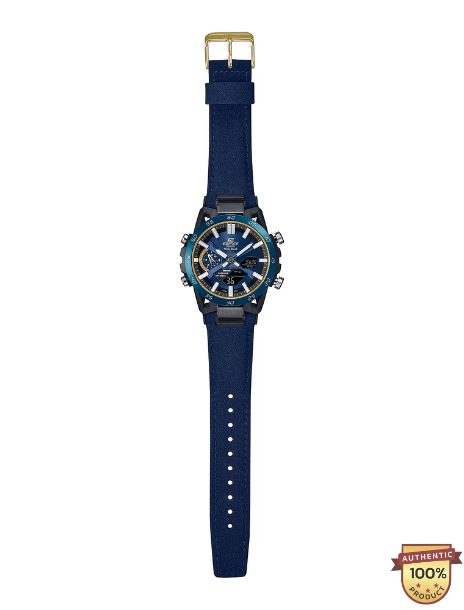 Casio Edifice EDF-21001-ER Solar Blue Analog-Digital Leather Belt Men Watch